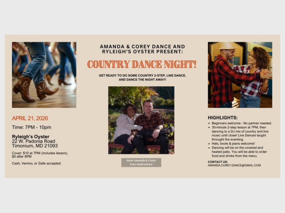 Put on your boots and join us for a fun-filled Country Dance Night!