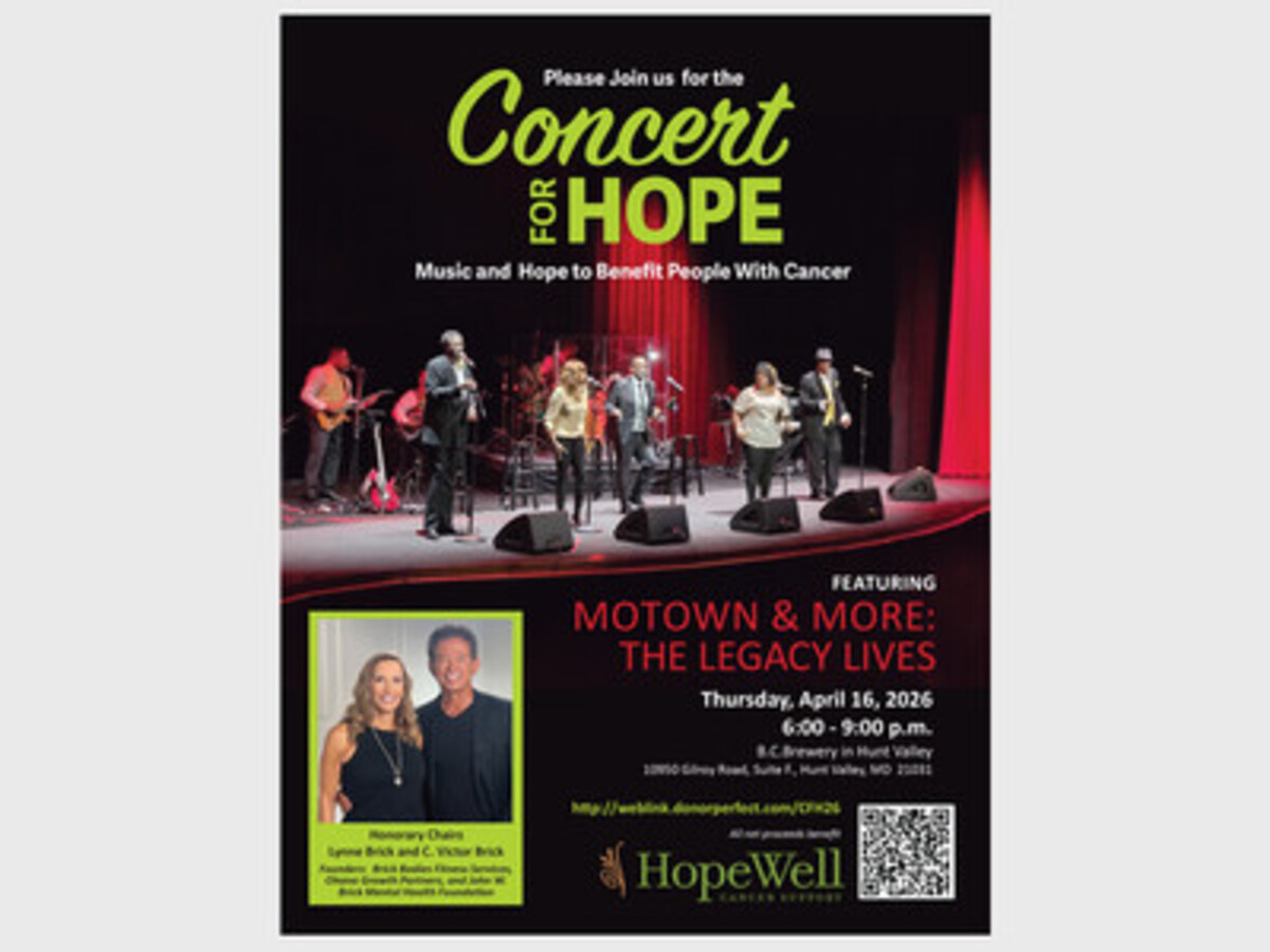 The Concert for Hope is the signature fundraiser for HopeWell Cancer Support, a local, non-profit organization in Lutherville.