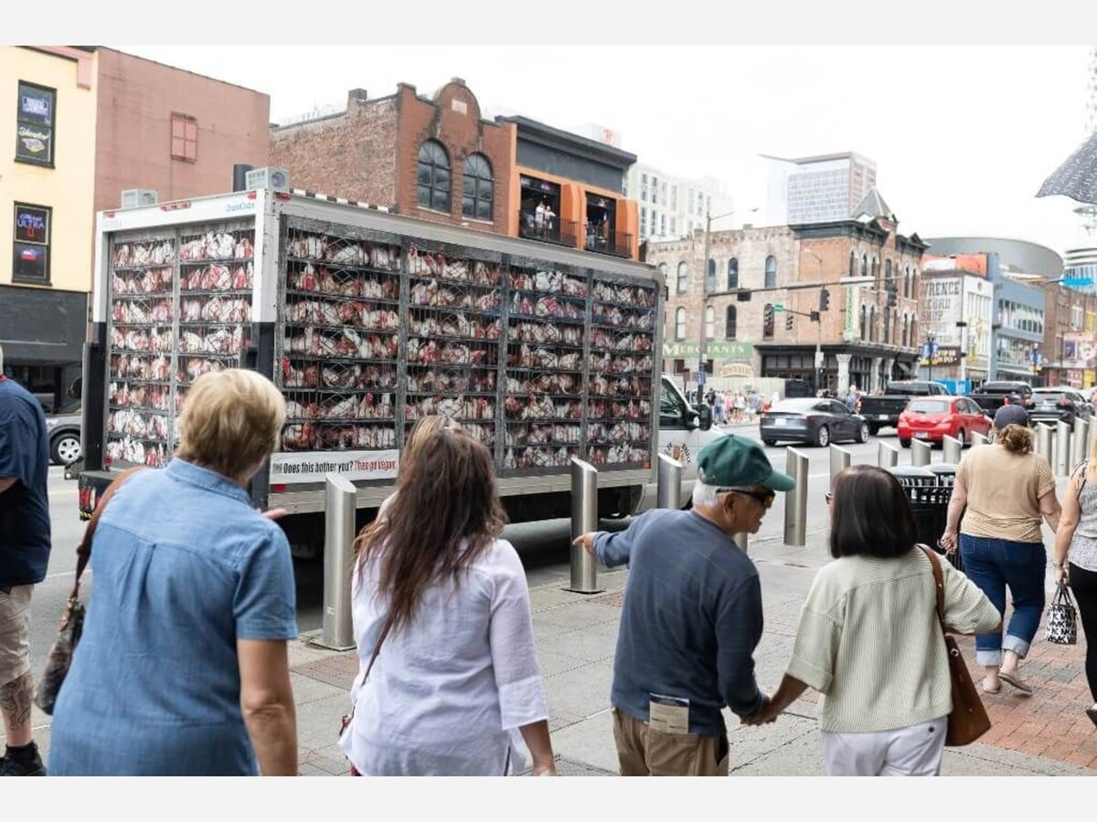 The vexatious vehicle’s arrival comes as a bird flu outbreak continues to spread across the U.S., resulting in a man’s death on January 6 and dozens of reported cases. Bird flu has also infected more than 900 herds of cows in the dairy industry and resulted in the killing of over 45 million chickens nationwide. PETA points out that breeding and raising animals for food creates hotspots for potentially deadly zoonotic diseases, and the Centers for Disease Control and Prevention warns that three out of every four new or emerging infectious diseases in humans are transmitted due to contact with animals, primarily those used in animal agriculture.