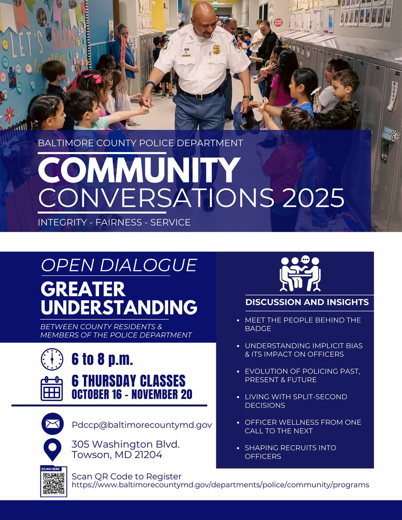 TOWSON, MD—The Baltimore County Police Department announced the launch of a new initiative, Community Conversations, aimed at strengthening the relationship between law enforcement officers and residents. The program is designed to “break down barriers to ensure the person beyond the badge is seen,” according to a press release.