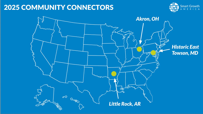 Learn more about Smart Growth America’s 2025 Community Connectors program at https://www.smartgrowthamerica.org/knowledge-hub/news/three-communities-selected-to-learn-about-and-design-quick-build-demonstration-projects/