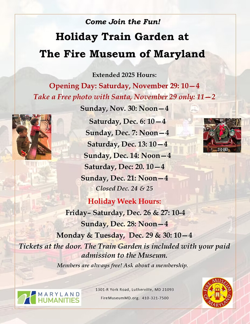 Every year, the Fire Museum hosts its annual holiday train garden. Santa and his sleigh kick off the season and welcomes kids, young and old to all the activities. The train garden itself is a Baltimore-area fire department tradition, where firefighters would work on a train layout in the station house.