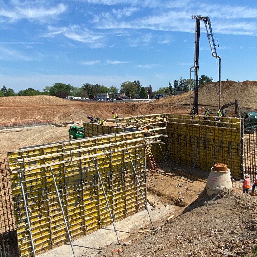 The winter and early spring have meant a lot of dirt moving (much larger than any dirt piles that you ever made as a child!), sediment and erosion control, underground stormwater creation, driveway and parking lot creation and now WE HAVE FOUNDATIONS UNDERWAY.